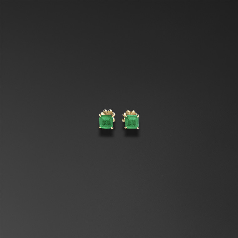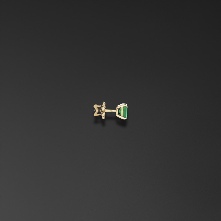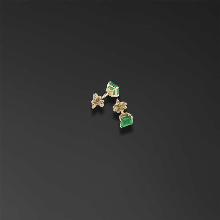 In the center of the composition is a deep green emerald, revealing the full force of its natural radiance. A special detail of the decoration is a twist lock made in the shape of a clover. This elegant symbol is hidden on the reverse side, each clover petal is decorated with the finest jewelry engraving, giving the product a special vivacity and texture. Continuing the main theme and making even the hidden details of the work artful. The collection of earrings includes a ring with a similar motif.